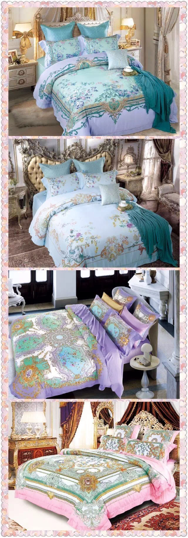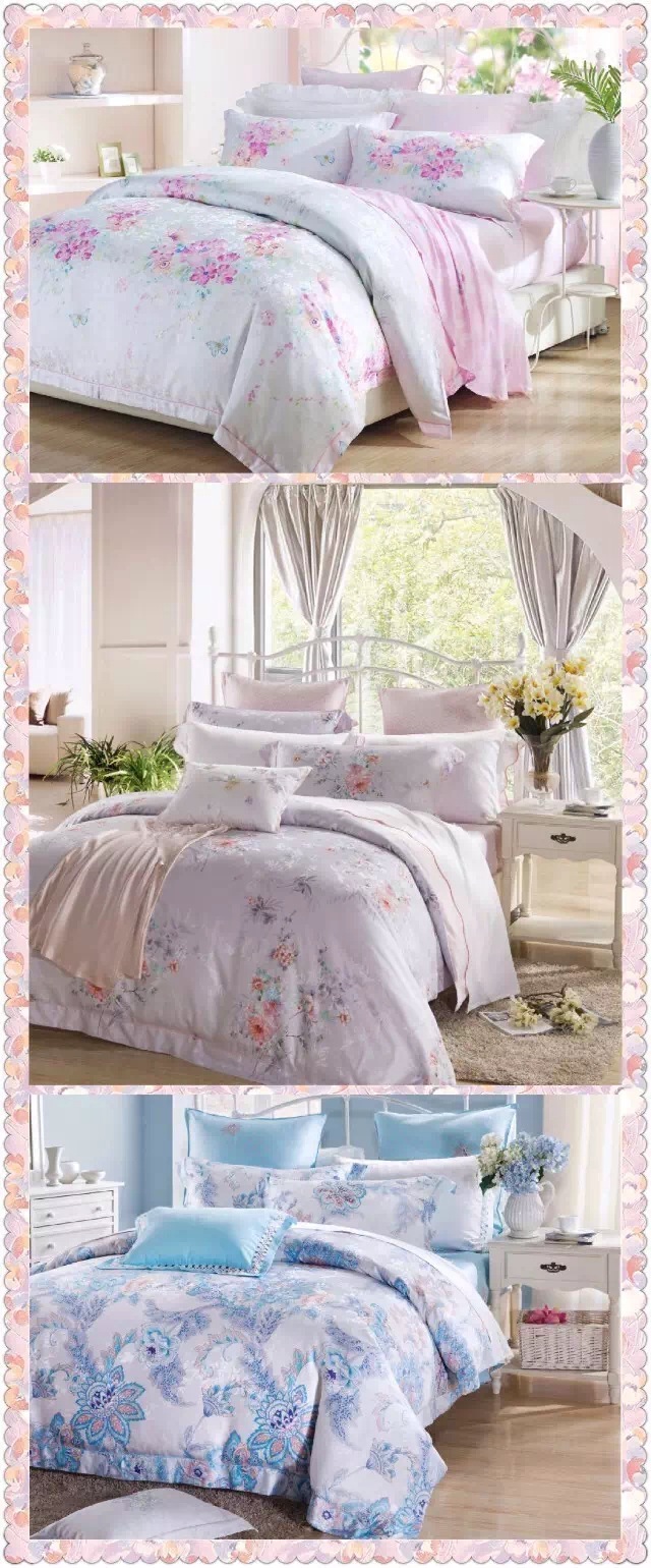 此款面料從桉樹中提取100%天然木槳為原料,采用80S,100%萊賽爾,奢華精致的特殊帶邊壓線工藝,采用新興環(huán)保數(shù)碼印染立體感強(qiáng)不裉色.手感特別細(xì)膩,有真絲般的光澤感和品質(zhì)感,產(chǎn)品的回彈性特好,有床上用品軟黃金之稱。